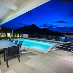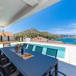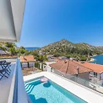 Die 3-Zimmer- Familiy Villa Navis With Heated Pool Rogotin verfügt über eine Terrasse mit Aussicht aufs Meer sowie einen Swimmingpool.